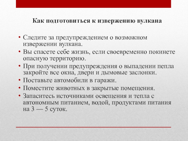 Слайд 11Как подготовиться к извержению вулкана