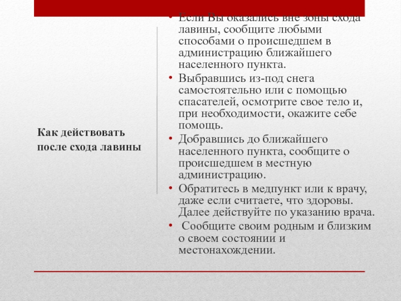 Как действовать после схода лавины