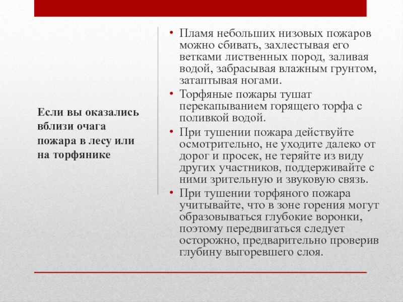 Слайд 34Пламя небольших низовых пожаров можно сбивать, захлестывая его ветками лиственных