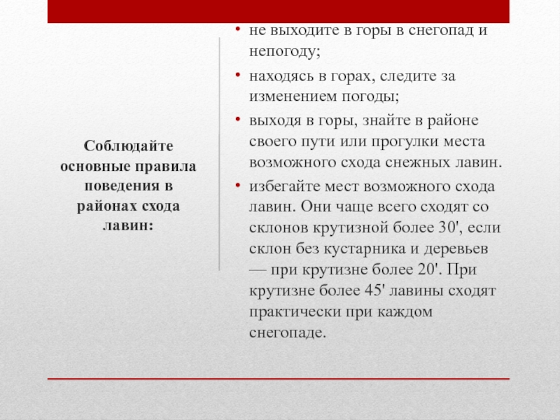 Соблюдайте основные правила поведения в районах схода лавин: