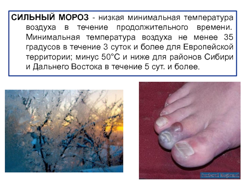 Слайд 74СИЛЬНЫЙ МОРОЗ - низкая минимальная температура воздуха в течение продолжительного