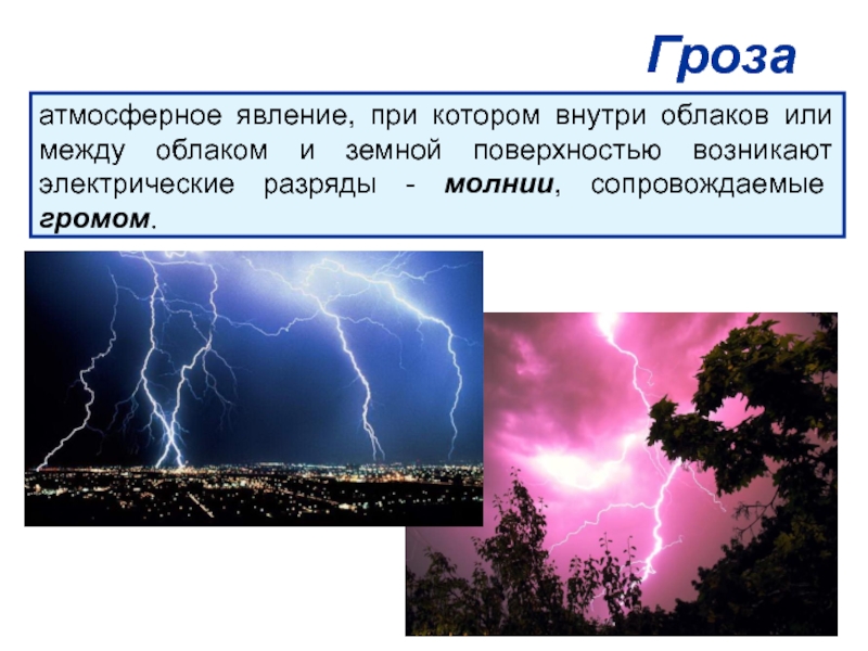 Слайд 4атмосферное явление, при котором внутри облаков или между облаком и