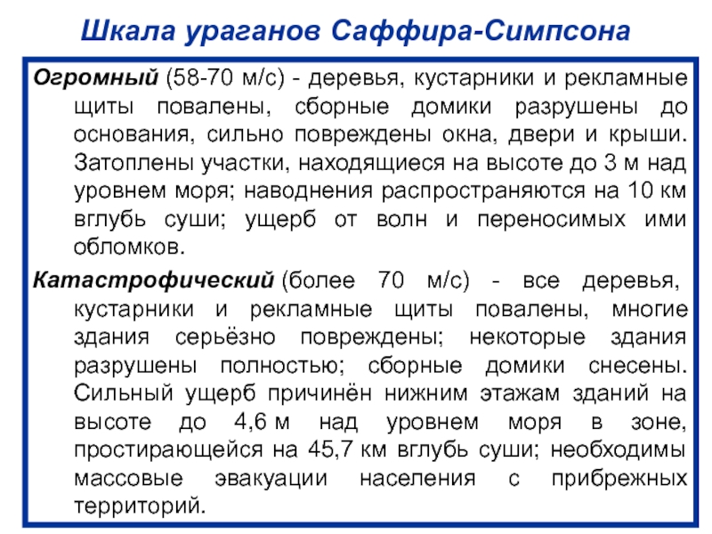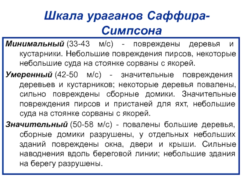 Слайд 59Шкала ураганов Саффира-Симпсона