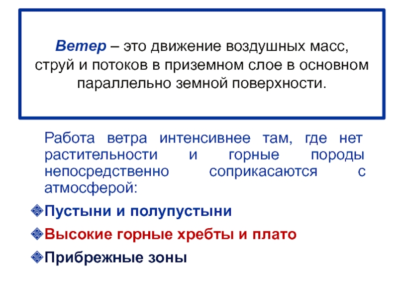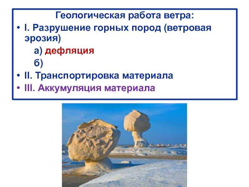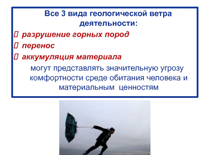 Слайд 11 Все 3 вида геологической ветра деятельности: