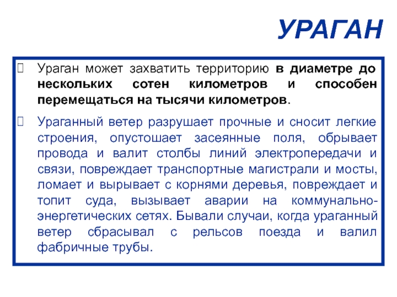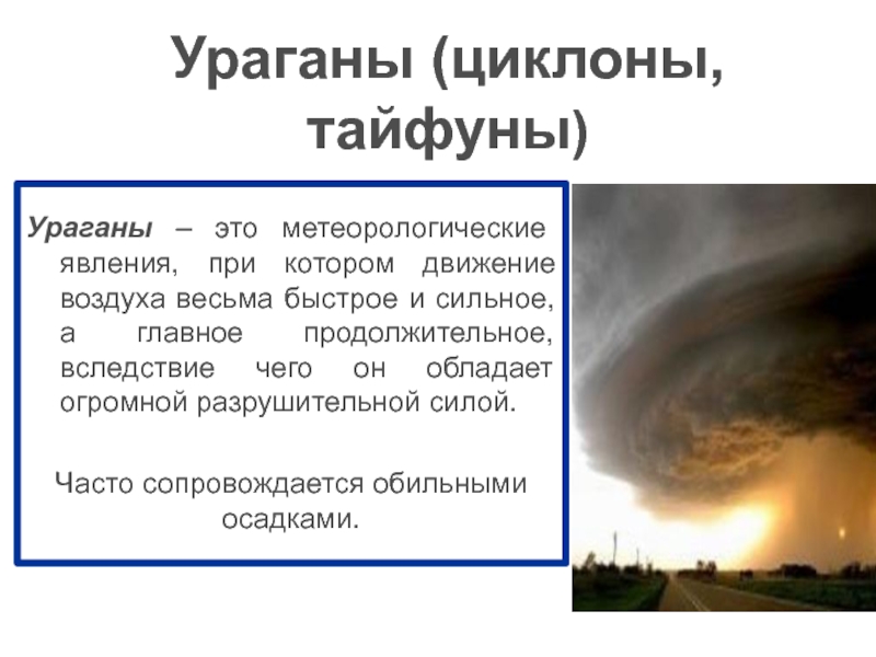 Ураганы – это метеорологические явления, при котором движение воздуха весьма