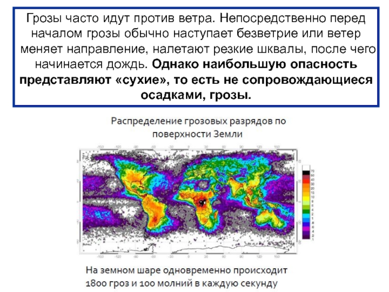 Слайд 6Грозы часто идут против ветра. Непосредственно перед началом грозы обычно