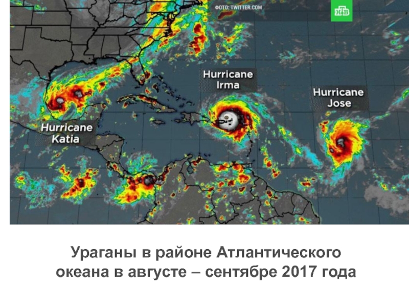 Слайд 19Ураганы в районе Атлантического океана в августе – сентябре 2017