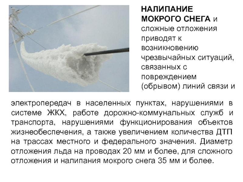 Слайд 75НАЛИПАНИЕ МОКРОГО СНЕГА и сложные отложения приводят к возникновению чрезвычайных
