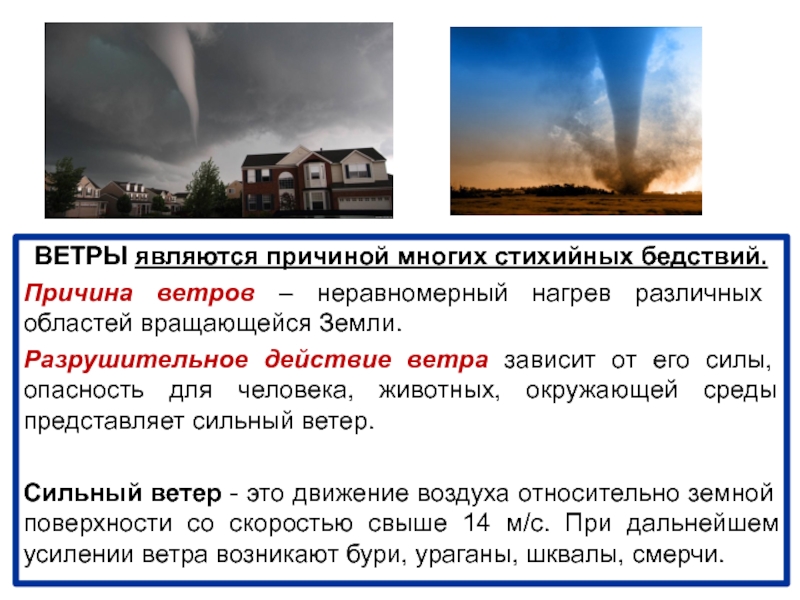 Слайд 9ВЕТРЫ являются причиной многих стихийных бедствий.