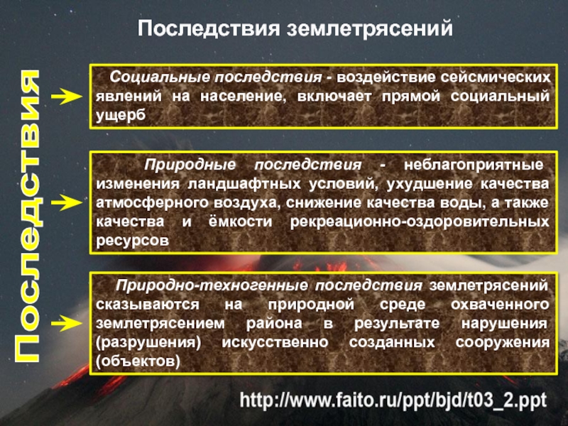 Природно-техногенные последствия землетрясений сказываются на природной среде охваченного землетрясением района в результате нарушения (разрушения) искусственно созданных сооружения (объектов)