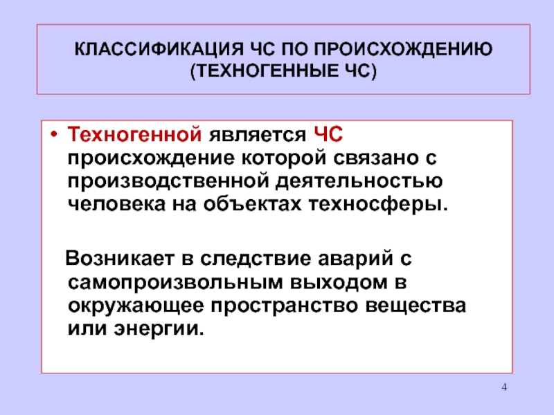 КЛАССИФИКАЦИЯ ЧС ПО ПРОИСХОЖДЕНИЮ