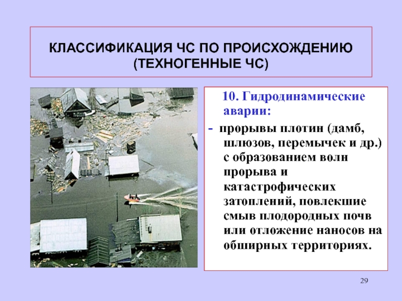 действие сил природы (землетрясения, ураганы, размывы плотин);