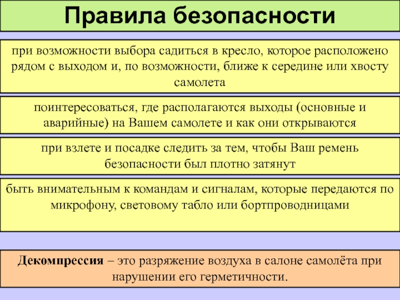 быть внимательным к командам и сигналам, которые передаются по микрофону, световому табло или бортпроводницами