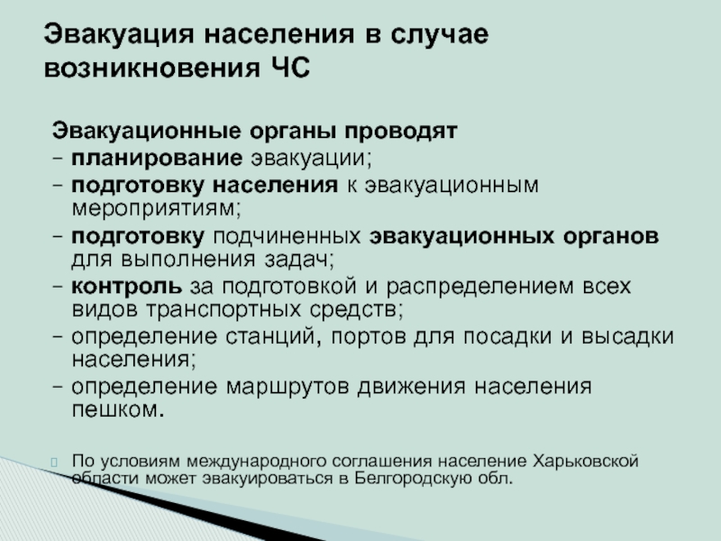 – подготовку подчиненных эвакуационных органов для