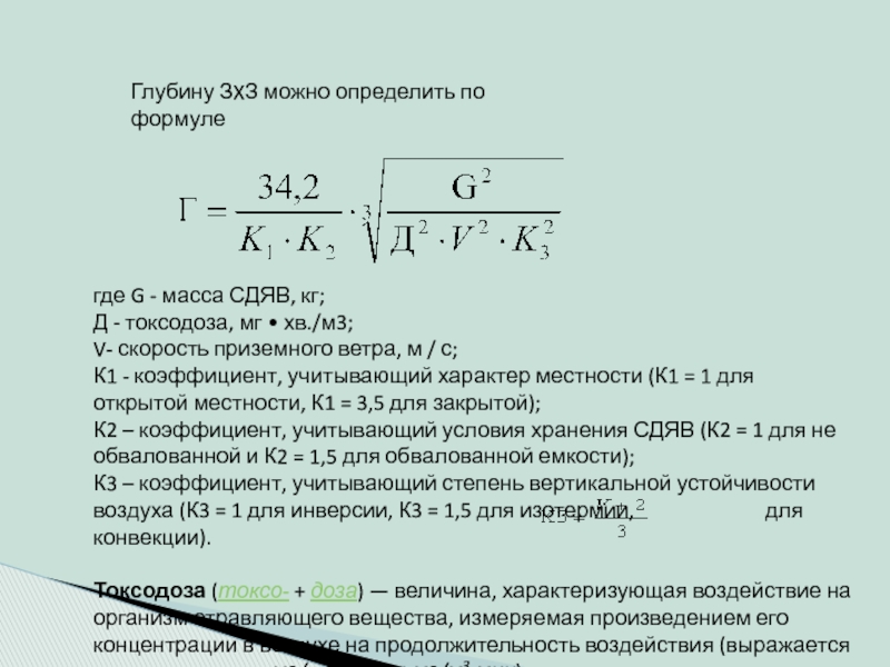 Слайд 7Глубину ЗXЗ можно определить по формуле