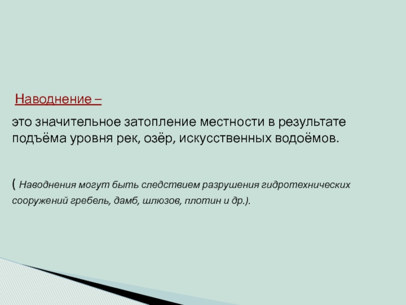 угрозы катастрофического затопления местности;