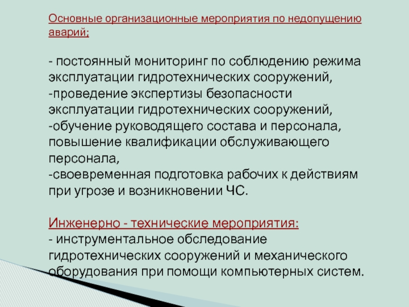 - Возможные террористические акты.