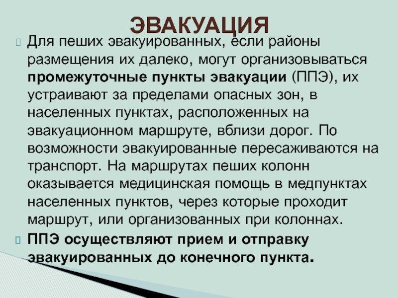 промежуточные пункты эвакуации (ППЭ), их устраивают за пределами опасных зон,