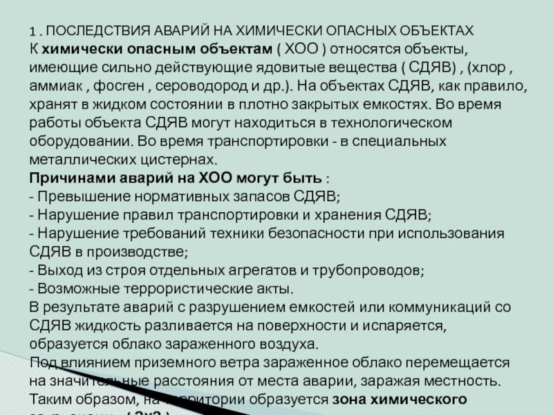 Слайд 41 . ПОСЛЕДСТВИЯ АВАРИЙ НА ХИМИЧЕСКИ ОПАСНЫХ ОБЪЕКТАХ