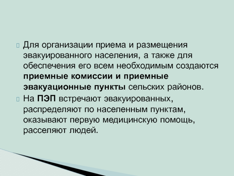 Слайд 65Для организации приема и размещения эвакуированного населения, а также для