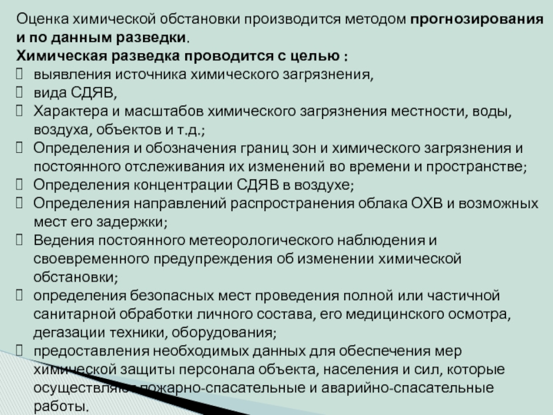 Слайд 5Оценка химической обстановки производится методом прогнозирования и по данным разведки.