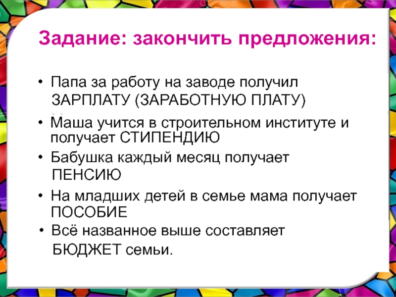 - на получение содержания от своих родителей и других членов семьи; при этом средства, причитающиеся ребенку в качестве алиментов, пенсий, пособий, поступают в распоряжение родителей и расходуются ими на содержание, образование и воспитание ребенка;
