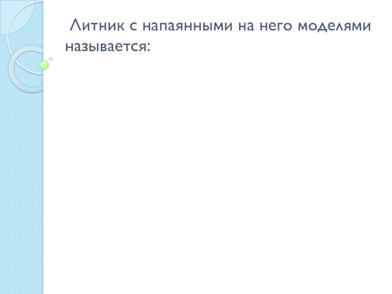 Литник с напаянными на него моделями называется: формой .стояком деревом  елкойПоказать ответДалее