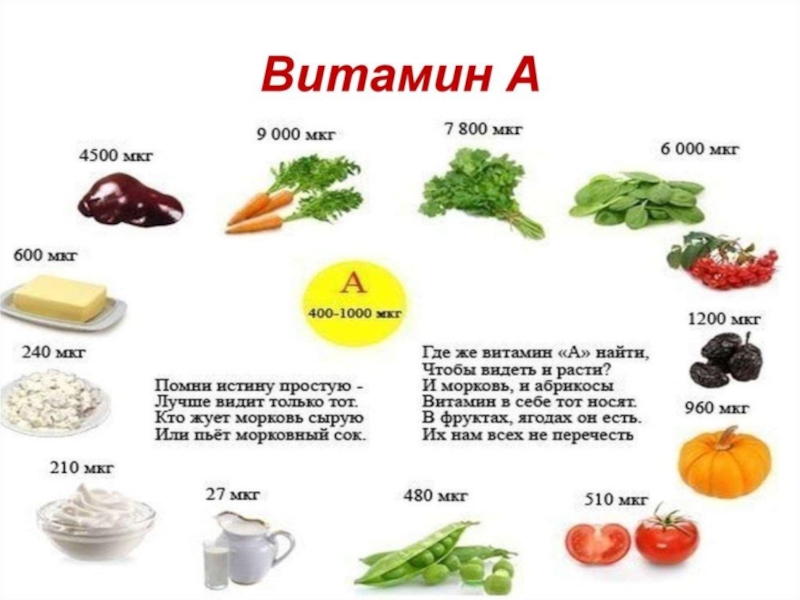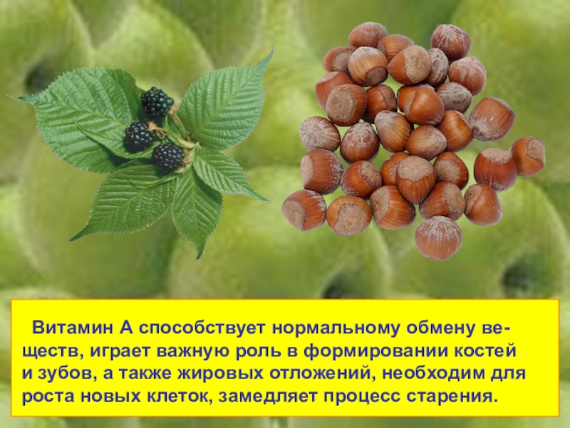 Витамин А способствует нормальному обмену ве-ществ, играет важную роль в формировании костейи зубов, а также жировых