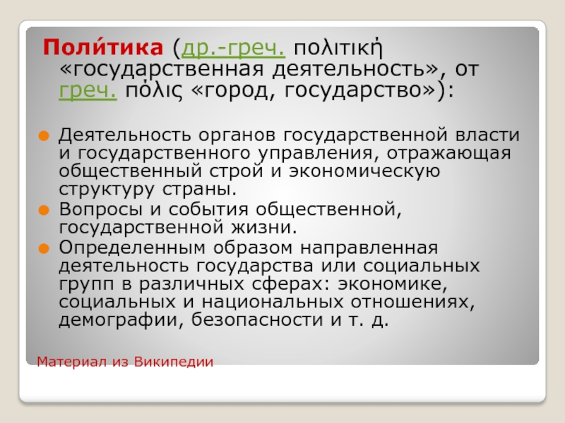 Поли́тика (др.-греч. πολιτική «государственная деятельность», от греч. πόλις