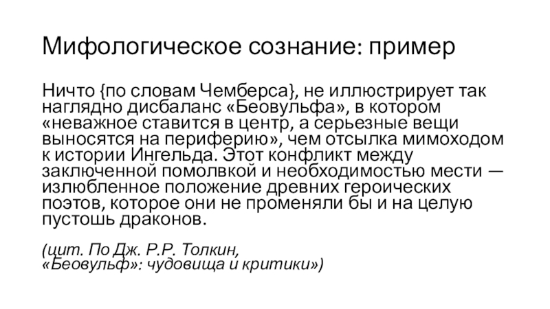 дисбаланс «Беовульфа», в котором «неважное ставится в центр, а серьезные