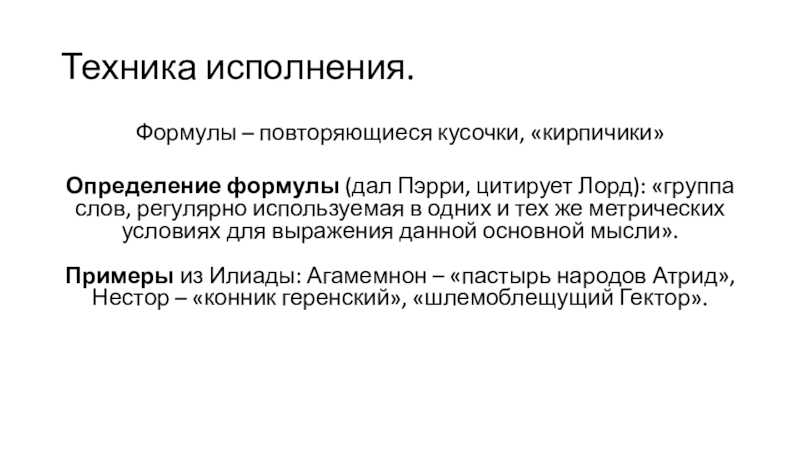 Примеры из Илиады: Агамемнон – «пастырь народов Атрид», Нестор – «конник геренский», «шлемоблещущий Гектор».