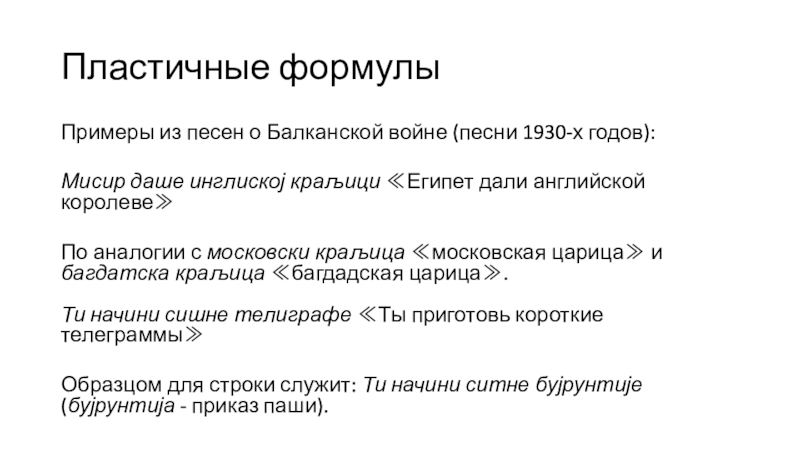Примеры из песен о Балканской войне (песни 1930-х годов):