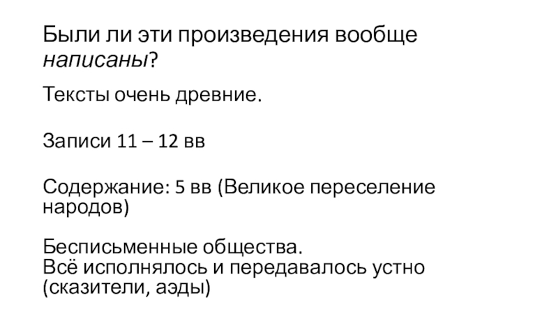 существующие письменные тексты не писал отдельный автор, просто кто-то зафиксировал услышанное