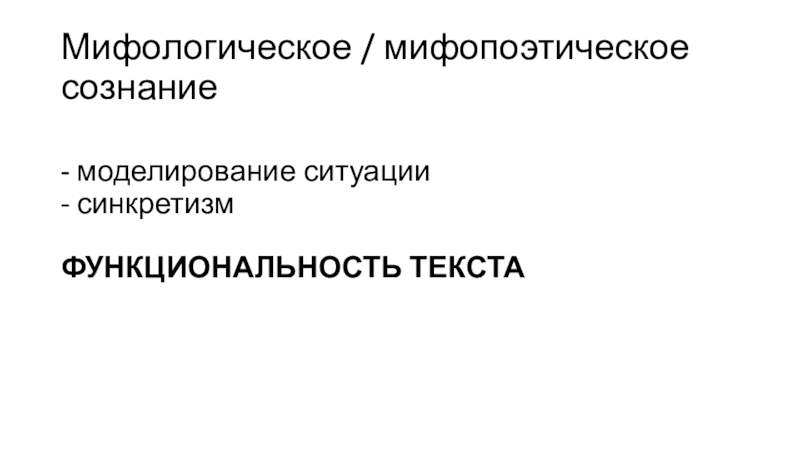 Слайд 13Мифологическое / мифопоэтическое сознание