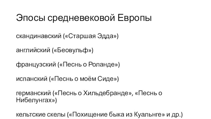 германский («Песнь о Хильдебранде», «Песнь о Нибелунгах»)