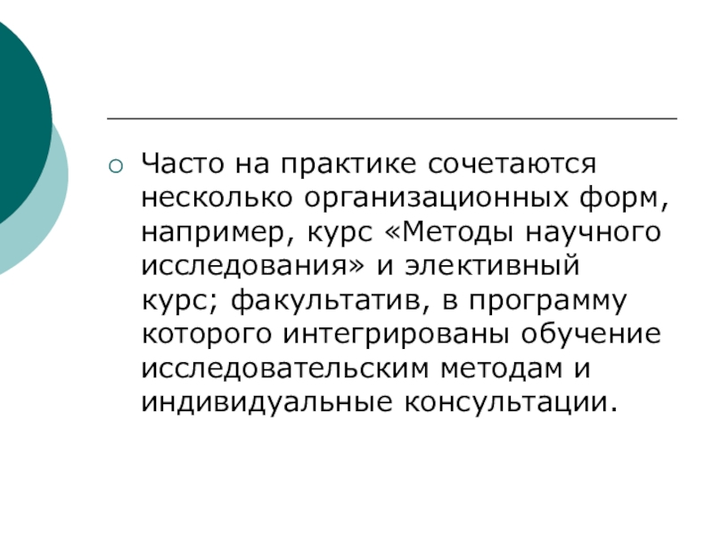 Слайд 26Часто на практике сочетаются несколько организационных форм, например, курс «Методы