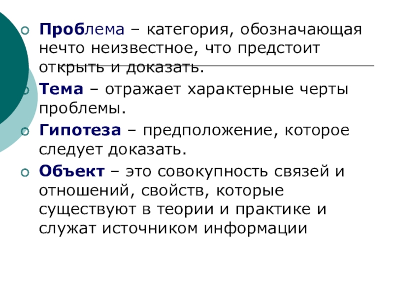 Слайд 6Проблема – категория, обозначающая нечто неизвестное, что предстоит открыть и