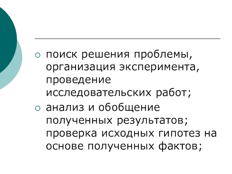 Слайд 11поиск решения проблемы, организация эксперимента, проведение исследовательских работ;