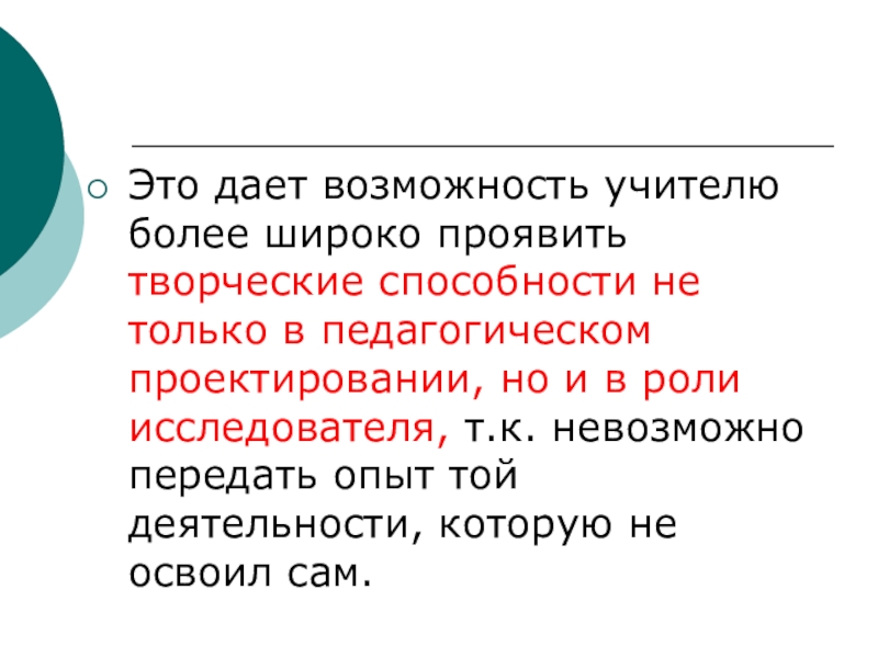 Слайд 29Это дает возможность учителю более широко проявить творческие способности не