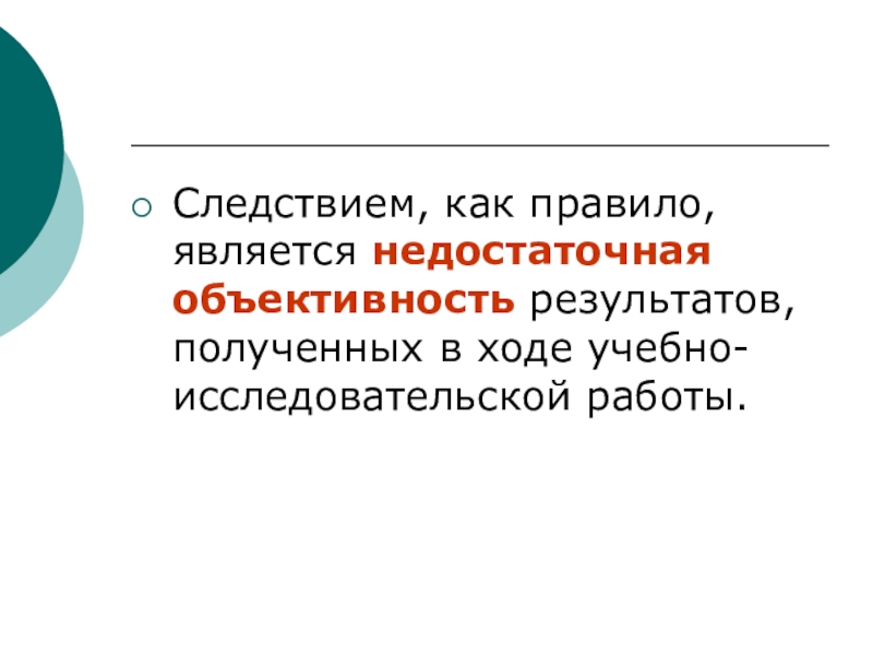 Слайд 19Следствием, как правило, является недостаточная объективность результатов, полученных в ходе