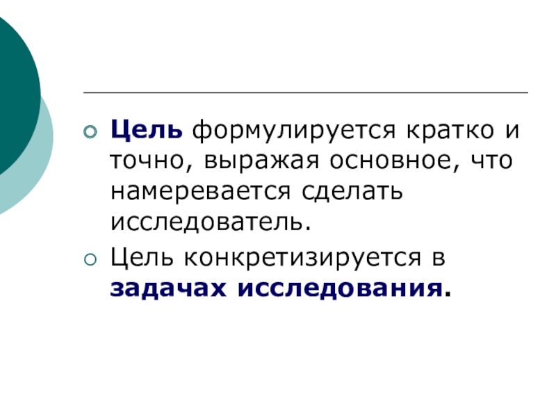 Слайд 8Цель формулируется кратко и точно, выражая основное, что намеревается сделать