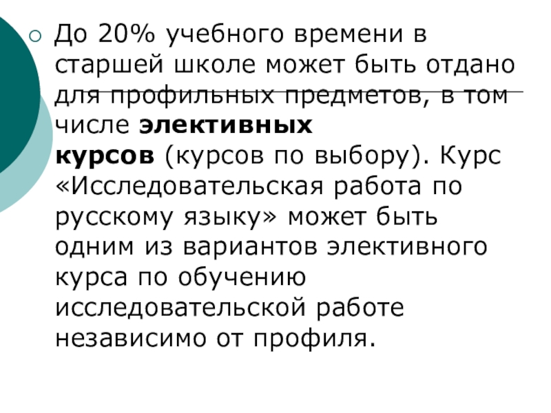 Слайд 22До 20% учебного времени в старшей школе может быть отдано