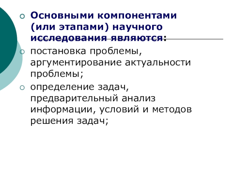 Слайд 9Основными компонентами (или этапами) научного исследования являются: