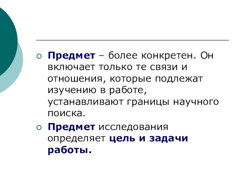 отношения, которые подлежат изучению в работе, устанавливают границы научного поиска.