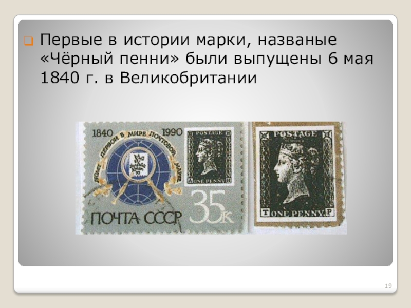 Слайд 19Первые в истории марки, названые «Чёрный пенни» были выпущены 6