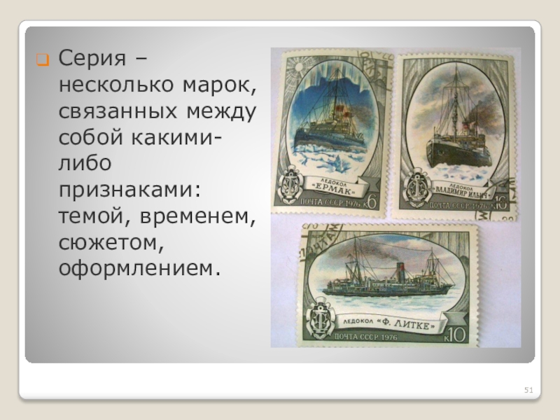 Слайд 51Серия – несколько марок, связанных между собой какими-либо признаками: темой,