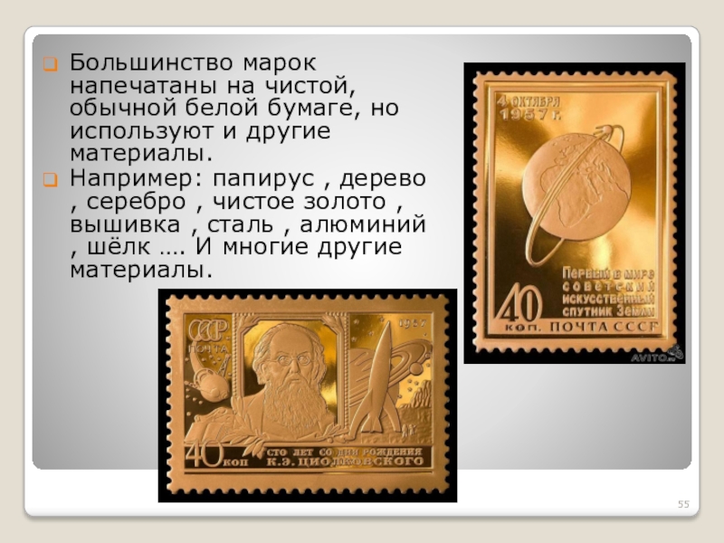 Слайд 55Большинство марок напечатаны на чистой, обычной белой бумаге, но используют