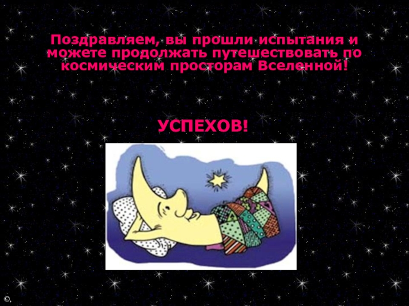 Слайд 44Поздравляем, вы прошли испытания и можете продолжать путешествовать по космическим