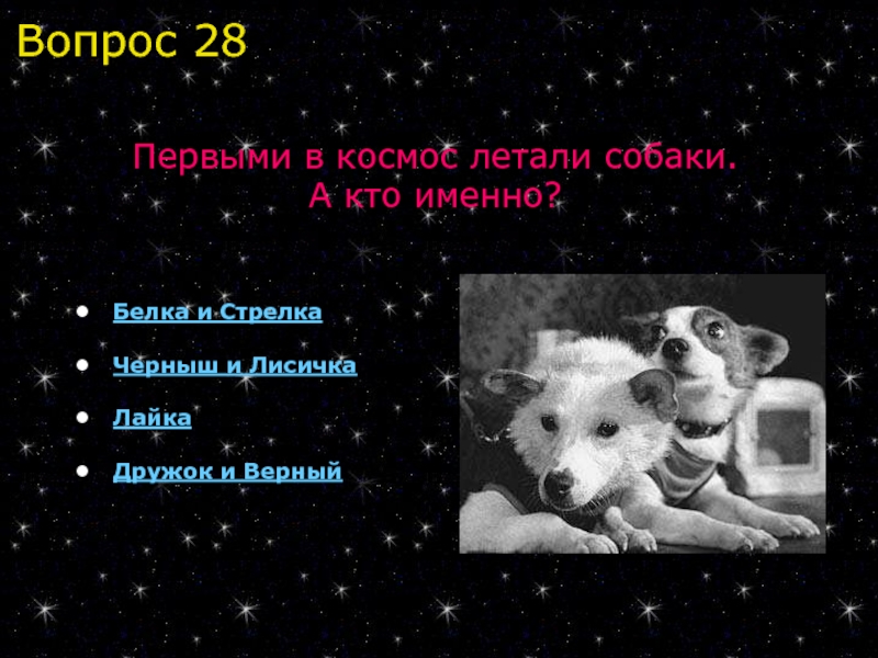 Слайд 31 Среди подопытных животных встречаются свои герои. Первой собакой-космонавтом
