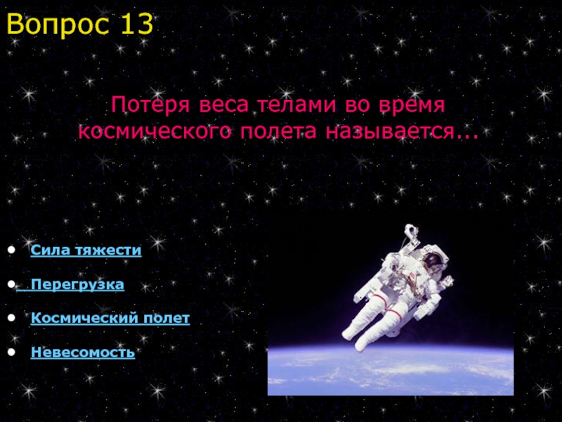 Слайд 29 Невесомостью называется состояние, при котором тела в космосе